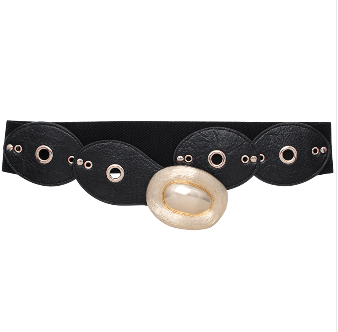 Metal Round Design Elastic Belt, Black