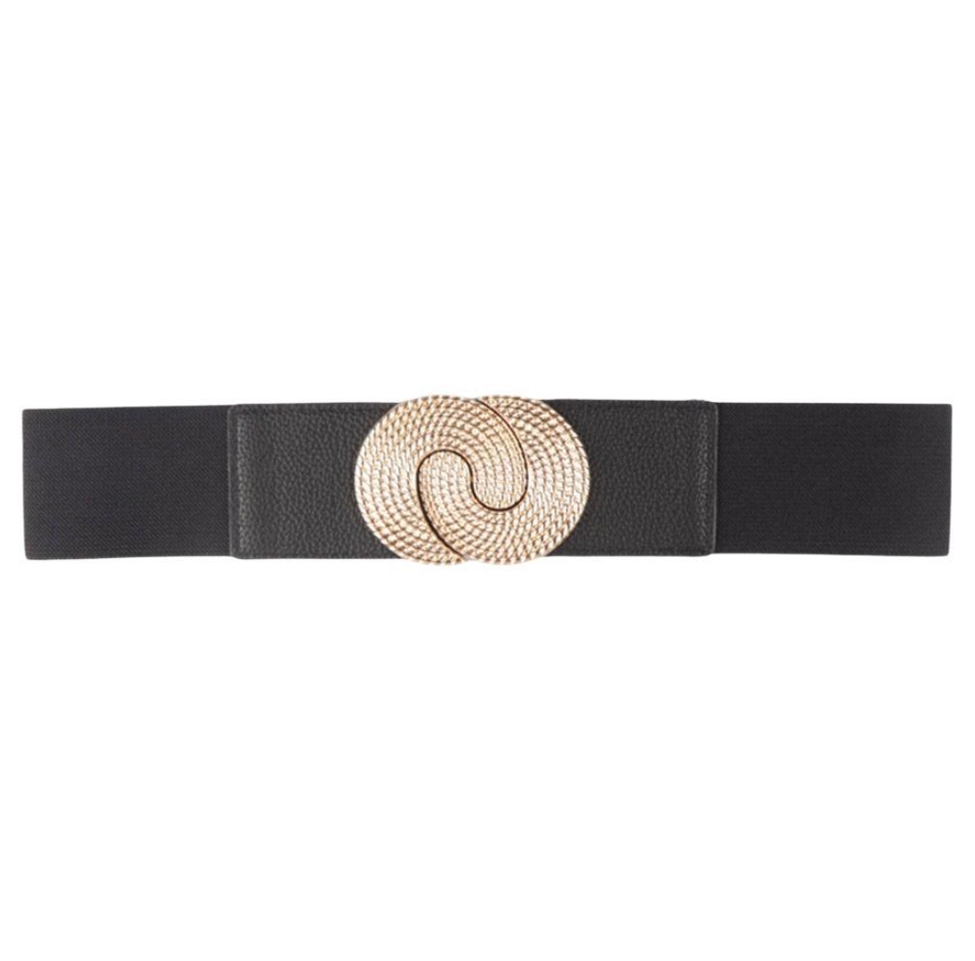 Round Metal Swirl Belt, Black
