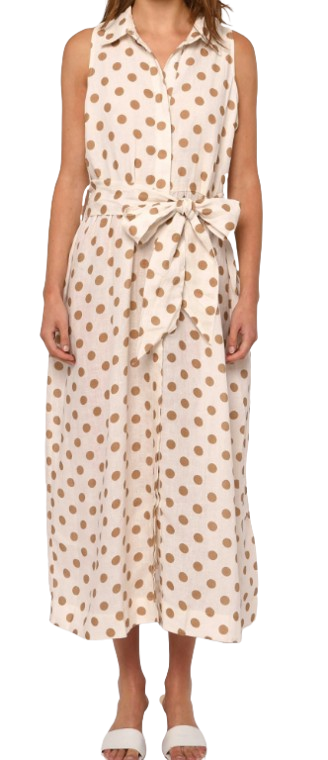 Meet your new favorite sleeveless shirt dress.The Arlene Dress in Jane Polka Dot. Crafted from soft, lightweight fabric, it features a functional center front placket with shell buttons.