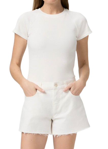 Dylan is our mid-rise short with a slightly relaxed fit. This pair is crafted from super soft denim with the perfect amount of stretch in tonal ecru with a raw hem.