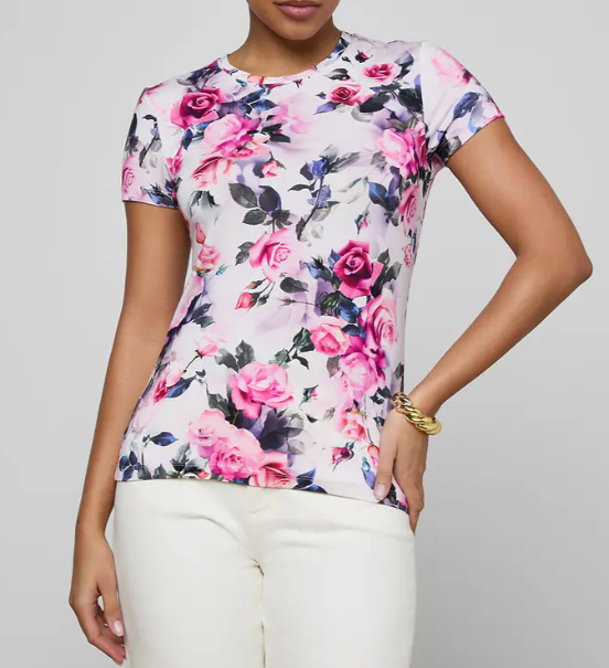 The all-time bestselling tee. Crafted in a soft, supple fabrication with a flattering, slim cut, the Ressi returns every season in fresh shades and prints—and is worth collecting in every color. Now back in a pink rose print.