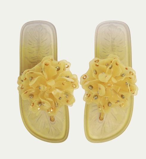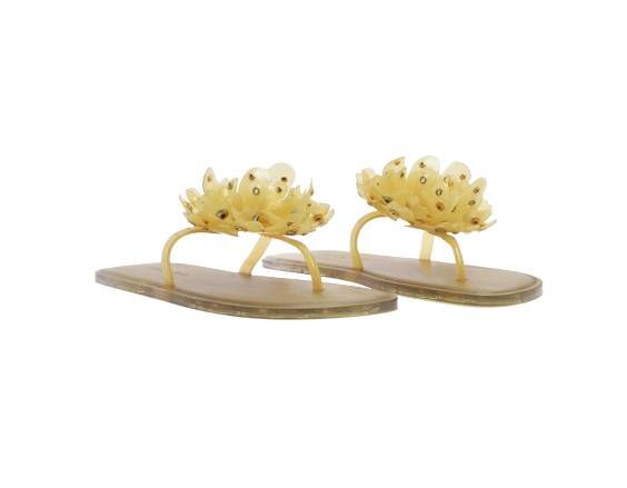Step into effortless charm with the Studded Flower Jelly Flat Sandal from FARM Rio. Crafted in sleek yellow jelly material, this playful sandal features delicate floral studs that bring a touch of tropical whimsy to every step. The flat silhouette offers casual comfort while the translucent texture adds a modern, fresh vibe.