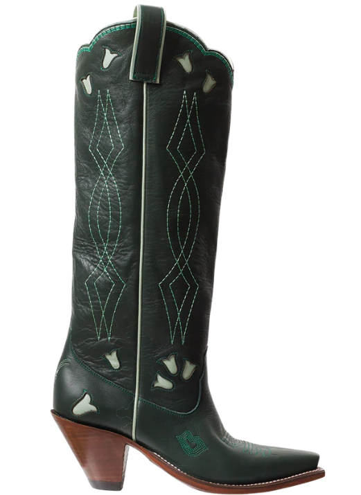 The Sunny Boot is an ode to true vintage rodeo vibes, with a little Besita flair. A fresh take on classic Western tulip stitching, the boot has signature Besita scallop topline and an unexpected stitched butterfly on the heel