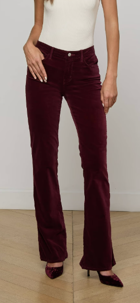 A classic fit in a modern fabrication. The Stevie features a clean straight leg fit crafted from luxurious stretch velvet. Now in maroon.