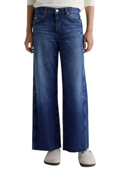 This mid-rise jean is adored for its easy, relaxed silhouette and cropped leg. Updated with raw-cut hem and side panels that connect to the pocket scoop, giving a weathered yet more streamlined look. Designed with highs and lows, whiskering, fading, and distressed trim in our medium blue wash, Watermist.