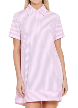 STRIPED POPLIN SHIFT DRESS WITH SIDE POCKETS AND INVERTED PLEAT IN BACK