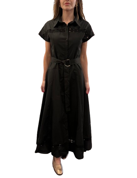 Shirt Collar Maxi Dress, Black