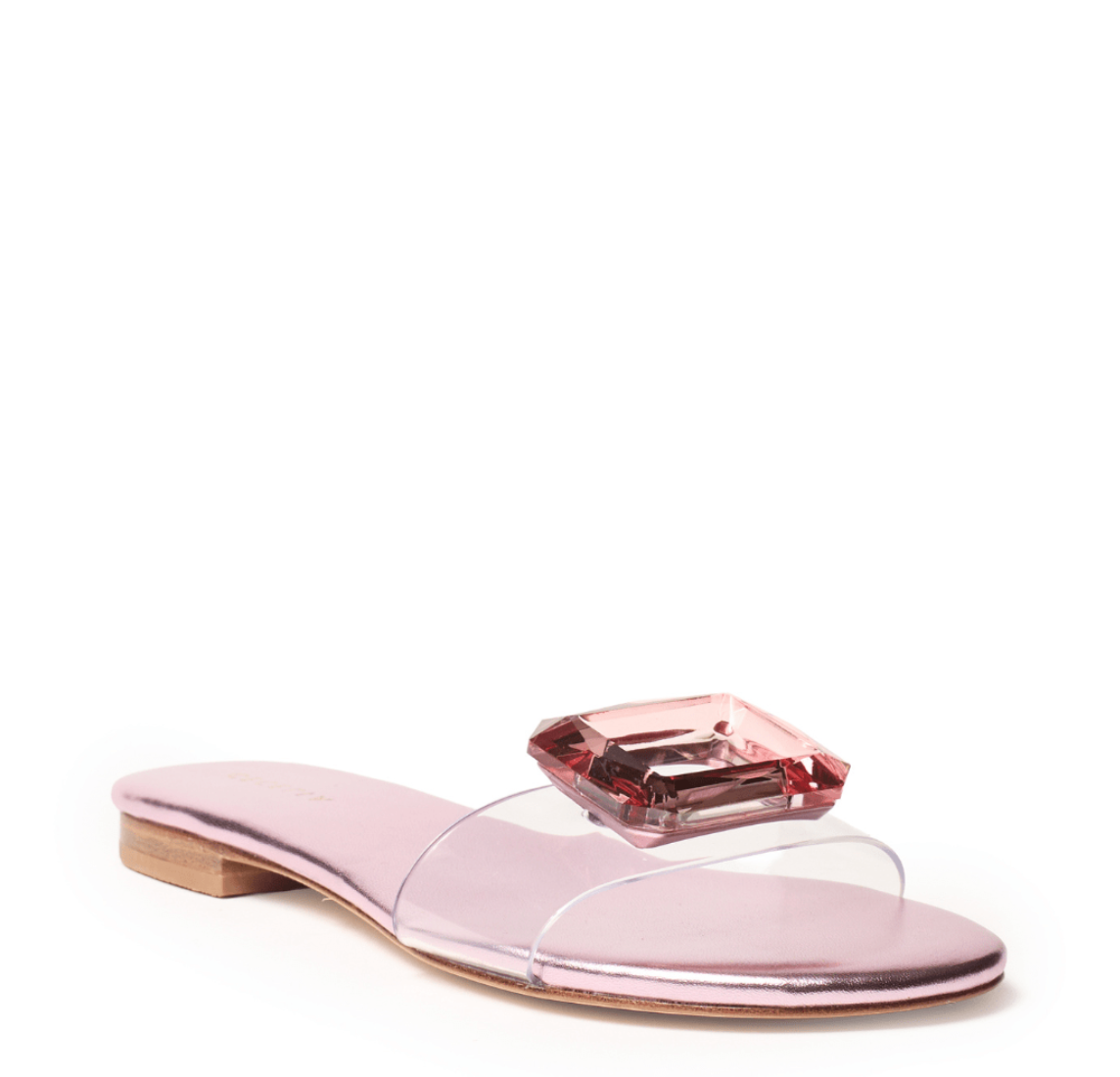 Color: Pink Metallic Hee: 1/4" Toe: Round Styling: Slip-on Sandal Footbed: Cushioned Memory-foam Materials: Leather and synthetic upper / leather lining / synthetic sole Imported