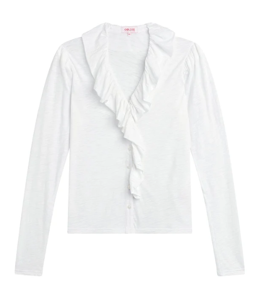 Loved for a reason: finished with dramatic ruffles at the neck and placket, this button-up is perfect for work, parties and dinner dates—any occasion when you want to make a statement.