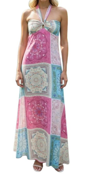 A-line maxi with a flowy hem and stretchy smocked back for comfort.