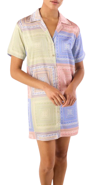 The Holland dress is an all-new mini silhouette cut from our pastel tiles–printed satin. This easy spring shirtdress features a V-neckline with a foldover collar and a full button front to the hem. Unlined with short sleeves, it’s an effortless style to pair with flats for the perfect daytime look.