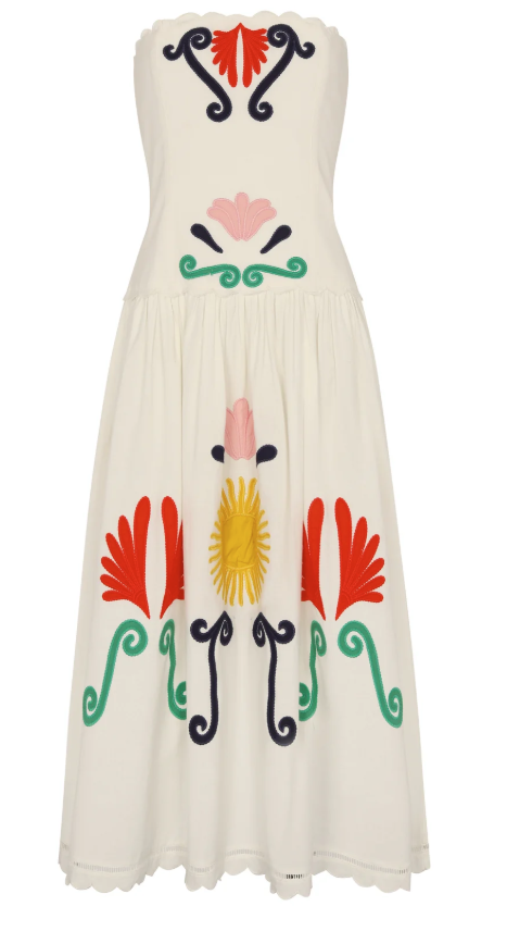 Strapless midi ivory dress