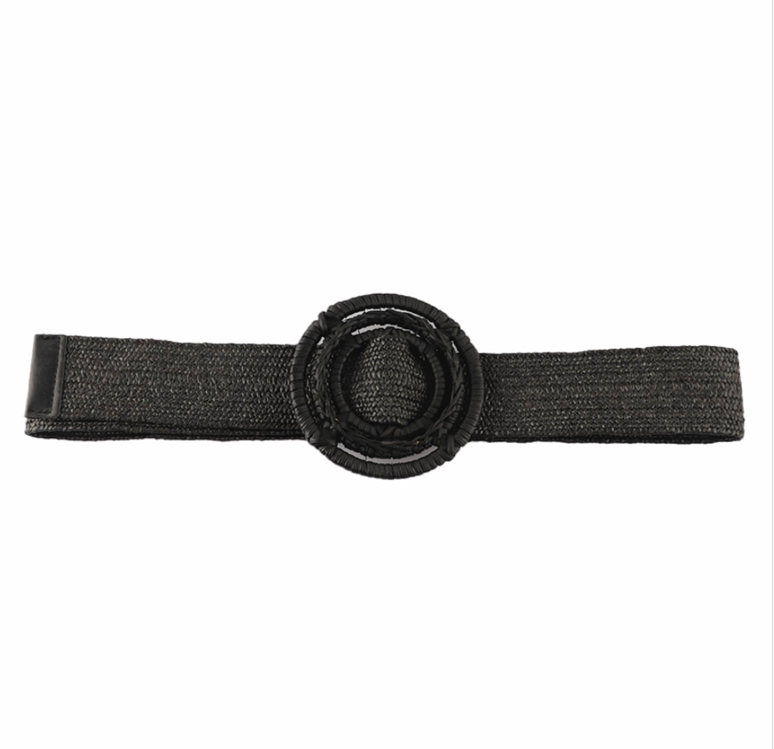 Straw Round Buckle Belt, Black