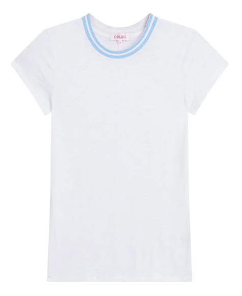 Twice the sparkle: finished with a dual-tipped ringer that shimmers in the light, this flattering tee invites you to shine anytime. Vertical railroad-stitch seaming in back completes the look.