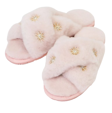 Treat your feet with our ultra-soft and plush sheepskin slippers. Dazzling rhinestone placed on the upper, that effortlessly complements any outfit. The slippers are made with a sturdy rubber sole that are suitable for both indoor relaxing at home and outdoor while running quick errands.