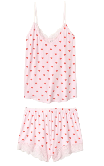 Cue the heart eyes. This cami-and-short set is made from buttery-soft modal jersey and scattered with red hearts. Lace trim at the neckline and hem adds a flirty finish that makes bedtime feel like a little love note.