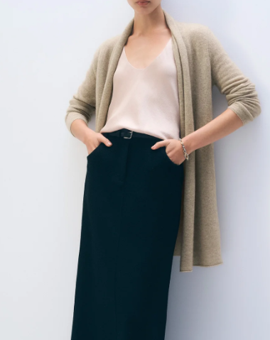 The longest-standing piece in our Core Collection. This trapeze cardigan is spun from pure cashmere with a straight fit and thigh-grazing length that drapes beautifully. Featherweight and loosely knit, it's a delicate layer of warmth—without the weight.