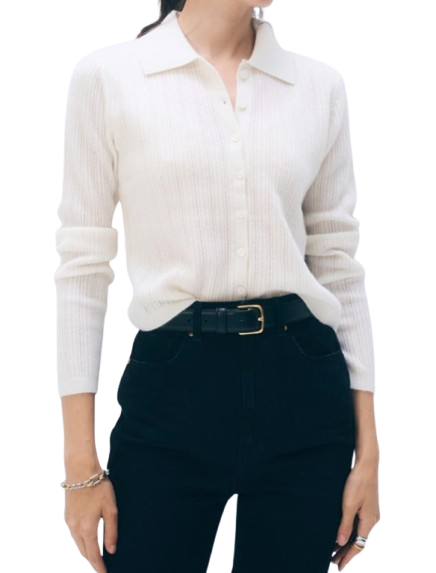 Cashmere Pointelle Shirt, Soft White