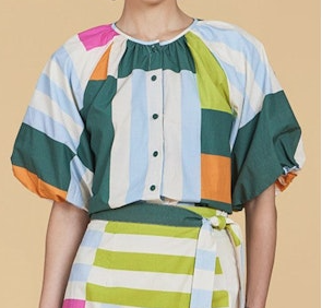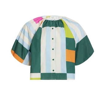 An easygoing silhouette with statement appeal, the Frida Top features a relaxed fit, open collar neckline, and voluminous short sleeves. Pair it with matching separates or denim for a pulled-together, effortless look