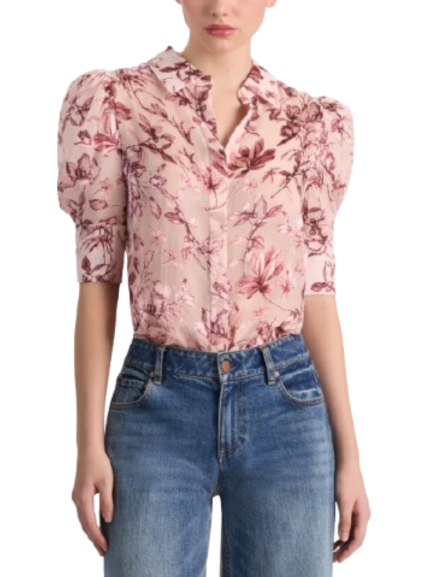 She’s polished, she’s floaty, and she’s about to be your favorite piece. Our newest take on the best-selling Willa is reimagined as a puff sleeve top, crafted in a printed silk satin burnout that feels lightweight and ethereal. The romantic shade of pink furthers the vibe, while a concealed button placket gives it a polished finish. Add tailored trousers or vintage denim and you've got instant chic.
